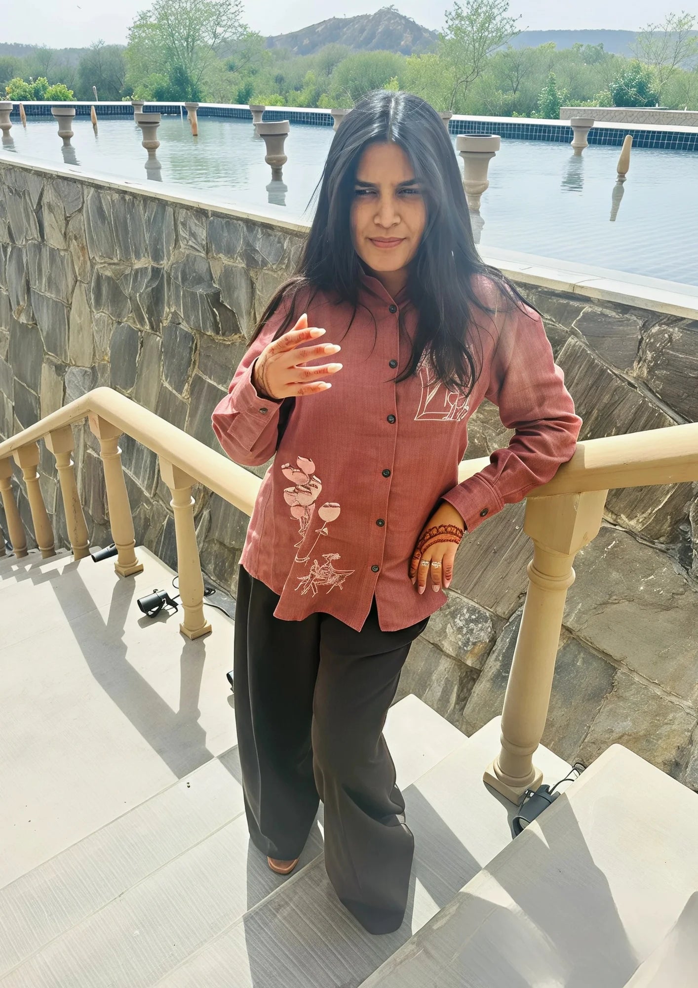 6. The color. The glow. The confidence. Kashish Shah in our Sangria Style Shirt is everything.