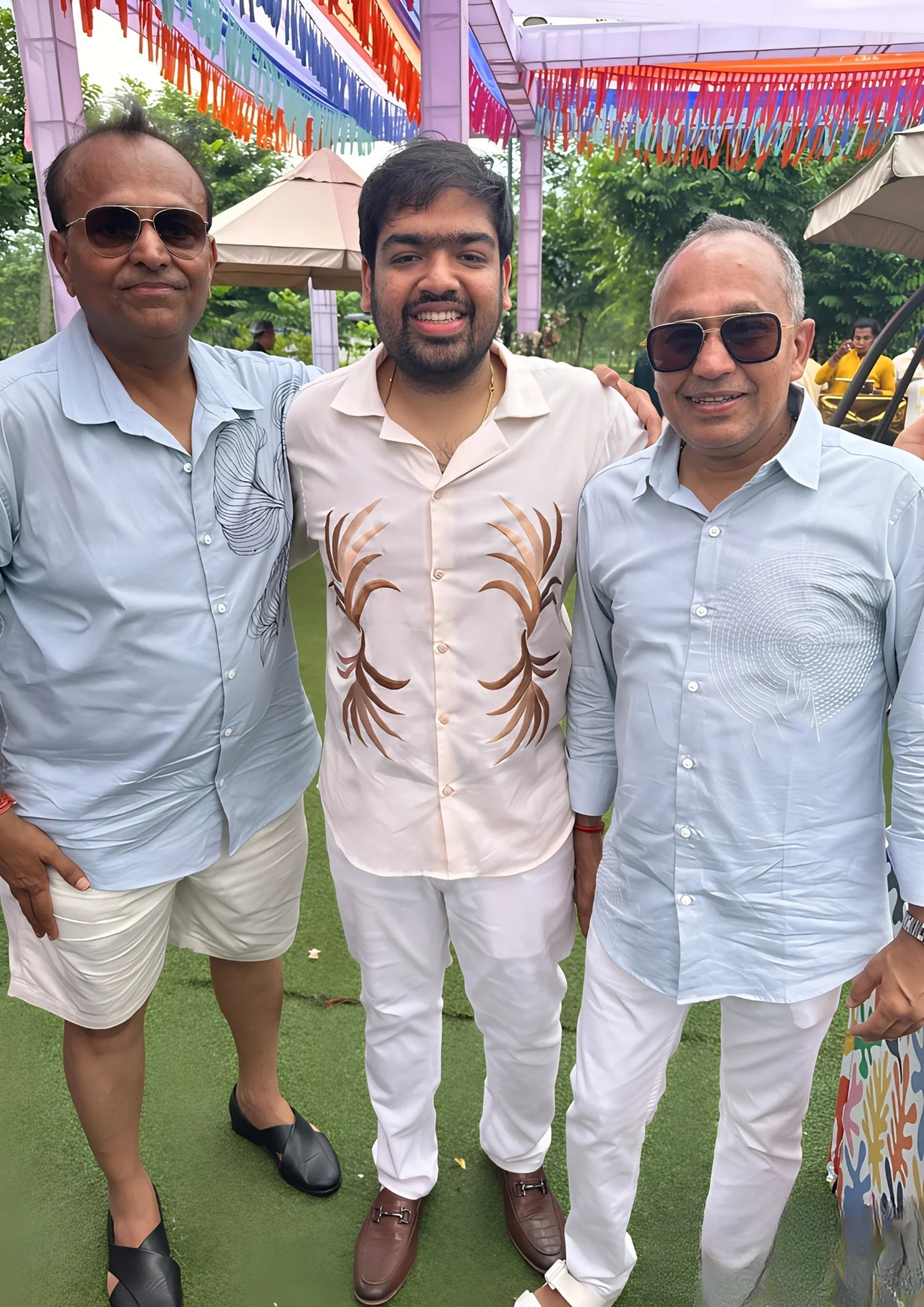 Sailesh Nemani, Ayush Banka and Vishal Saraf in our Custom Floral Cascade, Infinite Loop, and Down to Earth Shirts — wearing them like they were made just for this.
